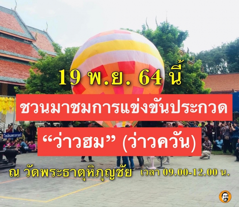 วันที่ 19 พฤศจิกายน 2564 ณ วัดพระธาตุหริภุญชัย วรมหาวิหาร จ.ลำพูน เวลา 09.00-12.00 น.