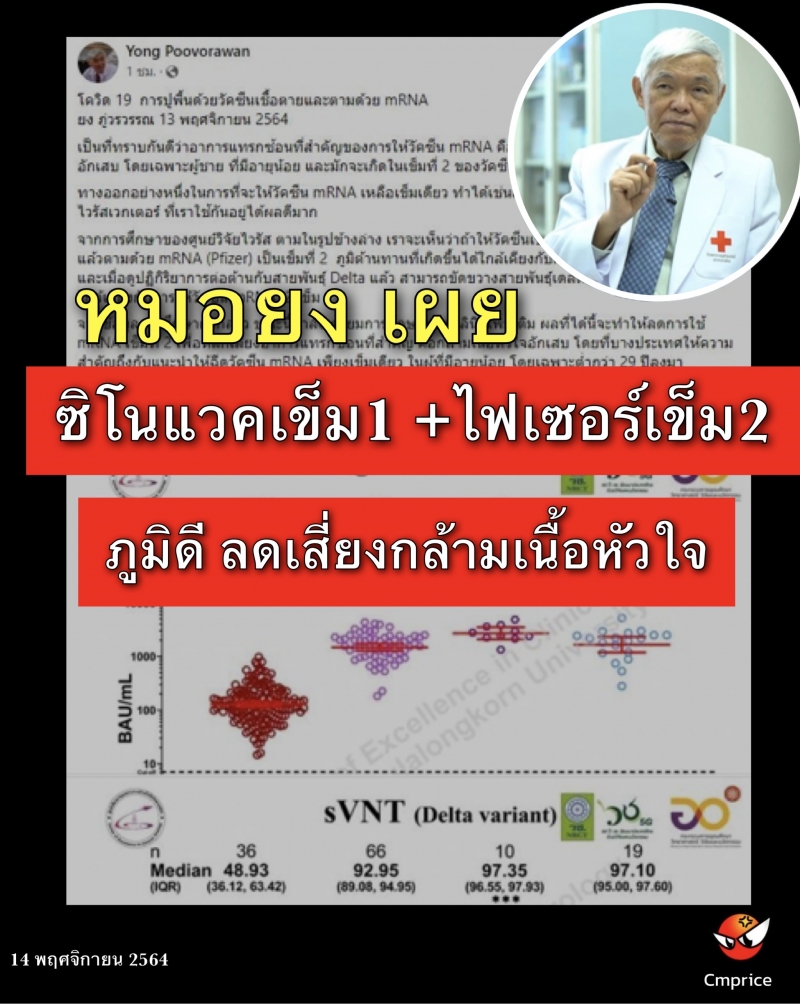 | • หมอยง เผย ซิโนแวคเข็ม1+ไฟเซอร์เข็ม2 ภูมิดี ลดเสี่ยงกล้ามเนื้อหัวใจ |