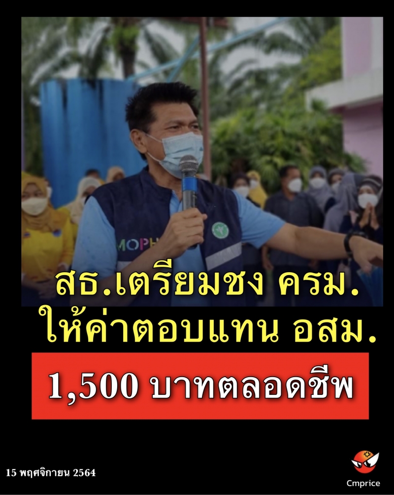 เรื่องของค่าตอบแทน เยียวยา ชดเชย และเสี่ยงภัย สำหรับการปฏิบัติงานของ อสม. 1,500 บาท ระยะเวลา 19 เดือน ที่จะสิ้นสุดในช่วงเดือนพฤศจิกายนนี้ สธ.กำลังดำเนินการเสนอต่อครม. เพื่อขอให้ได้ค่าตอบแทน 1,500 บาทตลอดชีพ