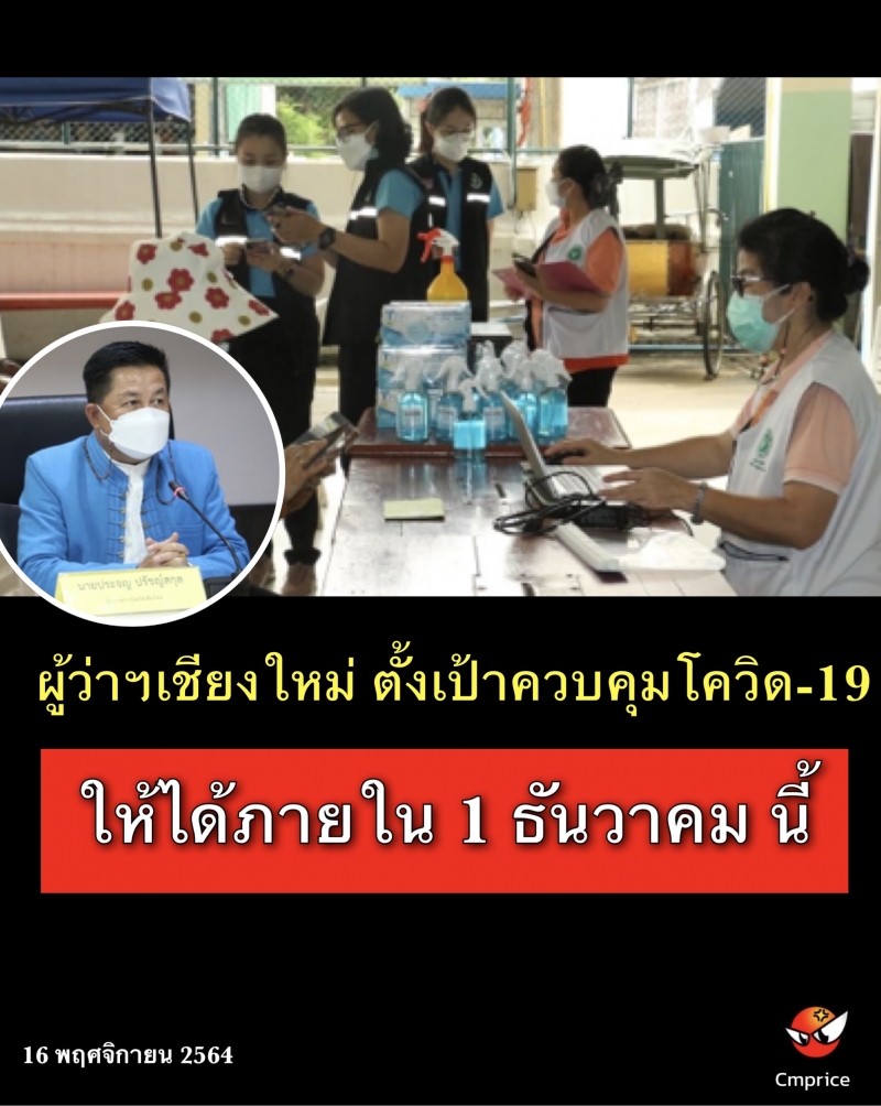 | • ผู้ว่าฯ เชียงใหม่ ตั้งเป้าล้อมกรอบเพื่อควบคุมโรคให้ได้ภายใน 1 ธันวาคม นี้ |