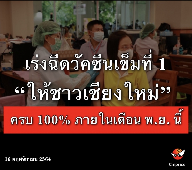ผู้ตรวจราชการกระทรวงสาธารณสุขฯ เผยจะเร่งฉีดวัคซีนเข็มที่ 1 ให้ชาวเชียงใหม่ครบ 100% ภายในเดือนพฤศจิกายนนี้ ด้านสาธารณสุขจังหวัดเชียงใหม่ ยืนยัน จังหวัดเชียงใหม่ยังคงมีศักยภาพและความมั่นคงในการดูแลผู้ติดเชื้อโควิด-19