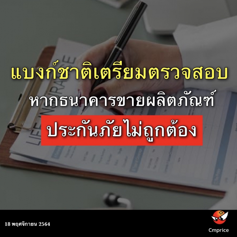 | • แบงก์ชาติเตรียมตรวจสอบ หากธนาคารขายผลิตภัณฑ์ประกันภัยไม่ถูกต้อง |