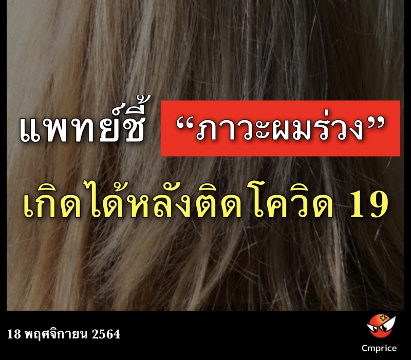 กรมการแพทย์ โดยสถาบันโรคผิวหนัง  ชี้ภาวะผมร่วงหลังการติดเชื้อโควิด 19 สาเหตุเกิดจากความเครียดและมีการกระตุ้นปฏิกิริยาการอักเสบซึ่งส่งผลต่อวงจรชีวิตของผมทำให้วงจรผมมีการเปลี่ยนเร็วกว่าปกติ พร้อมทั้งให้คำแนะนำในการรักษาที่ถูกวิธี