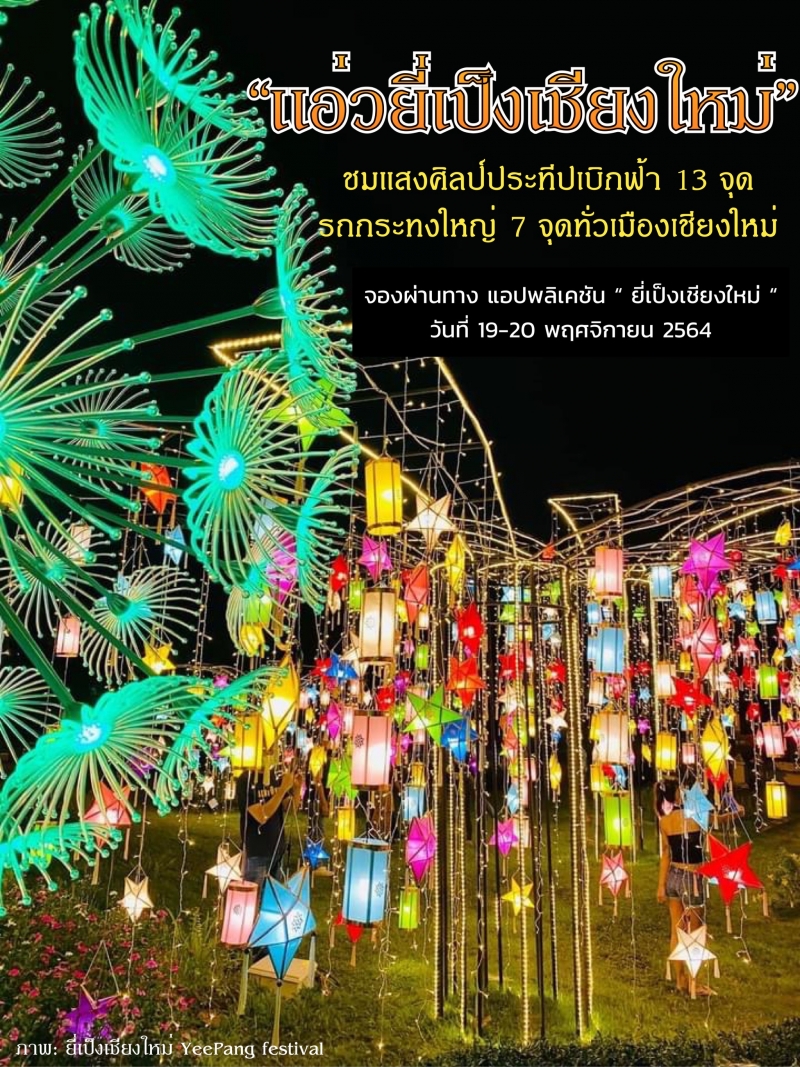 แอ่วยี่เป็งเชียงใหม่ ชมแสงศิลป์ประทีปเบิกฟ้า 13 จุด และ รถกระทงใหญ่ 7 จุดทั่วเมืองเชียงใหม่ จองผ่านทาง แอปพลิเคชัน “ ยี่เป็งเชียงใหม่ “