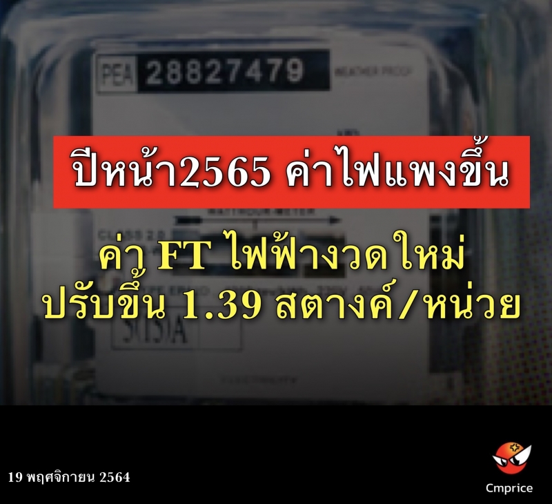 | • ปีหน้า2565 ค่าไฟแพงขึ้น ค่า FT ไฟฟ้างวดใหม่ ปรับขึ้น 1.39 สตางค์/หน่วย |
