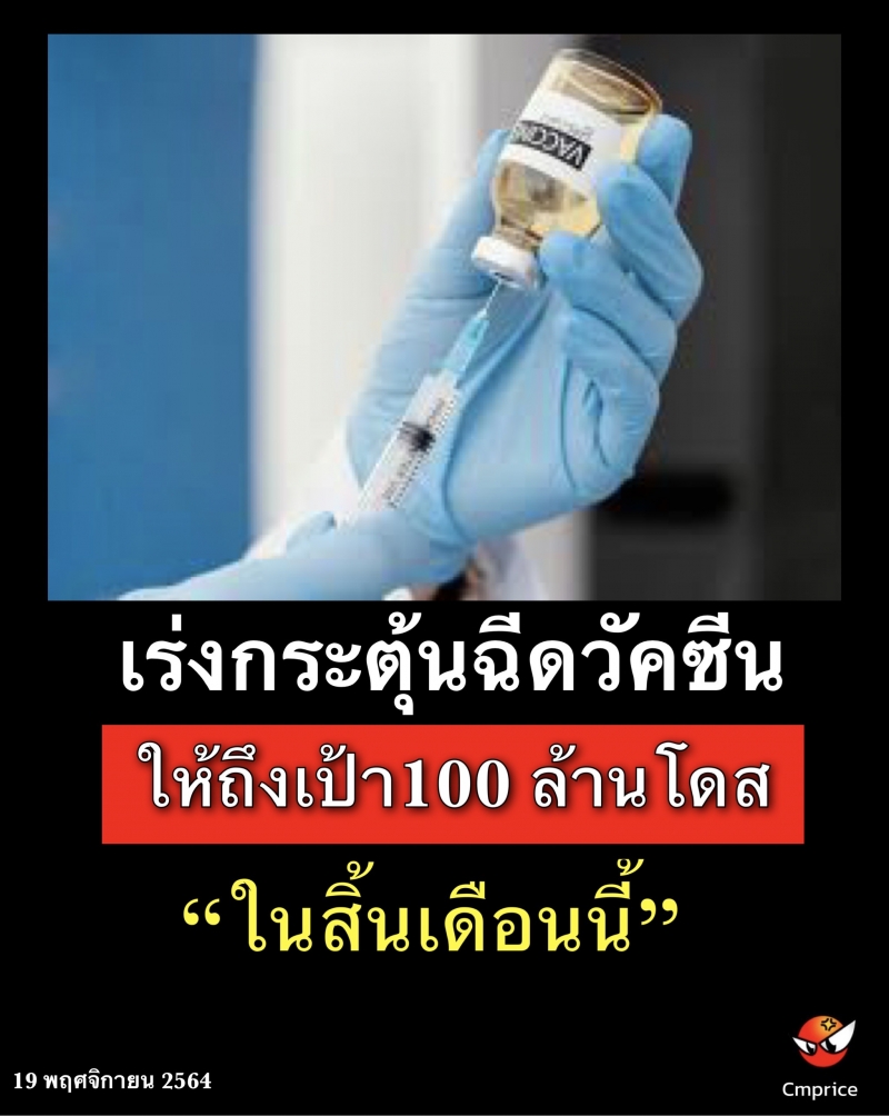 | • เร่งกระตุ้นฉีดวัคซีน ให้ถึงเป้า100 ล้านโดส ในสิ้นเดือนนี้ |