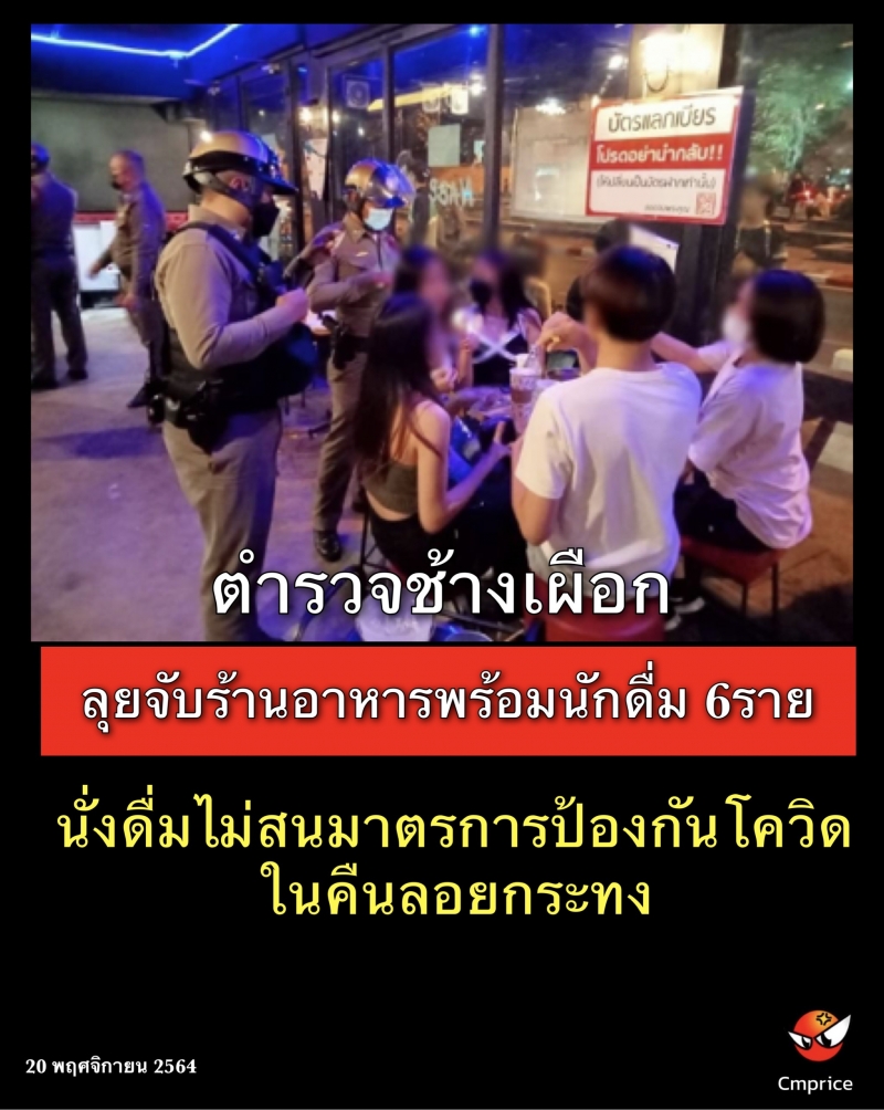 ตำรวจช้างเผือก ลุยจับร้านอาหารพร้อมนักดื่ม6ราย นั่งดื่มไม่สนมาตรการป้องกันโควิดในคืนลอยกระทง