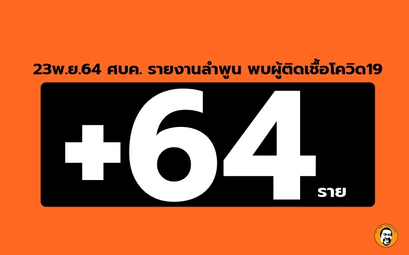และวันนี้ เพจ ศูนย์ข้อมูล COVID-19 ได้รายงานว่า พบผู้ติดเชื้อในจังหวัดลำพูน 64ราย โดย เป็นข้อมูลจากกระทรวงสาธารณสุข ณ ณ เวลา 01:00 น.ของวันที่ 23พ.ย.64