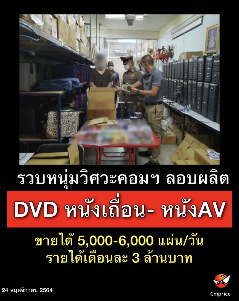 รวบหนุ่มวิศวะคอมฯ ลอบผลิตDVD หนังเถื่อน- หนังเอวี ขายได้ 5,000-6,000 แผ่น/วัน รายได้เดือนละ 3 ล้านบาท