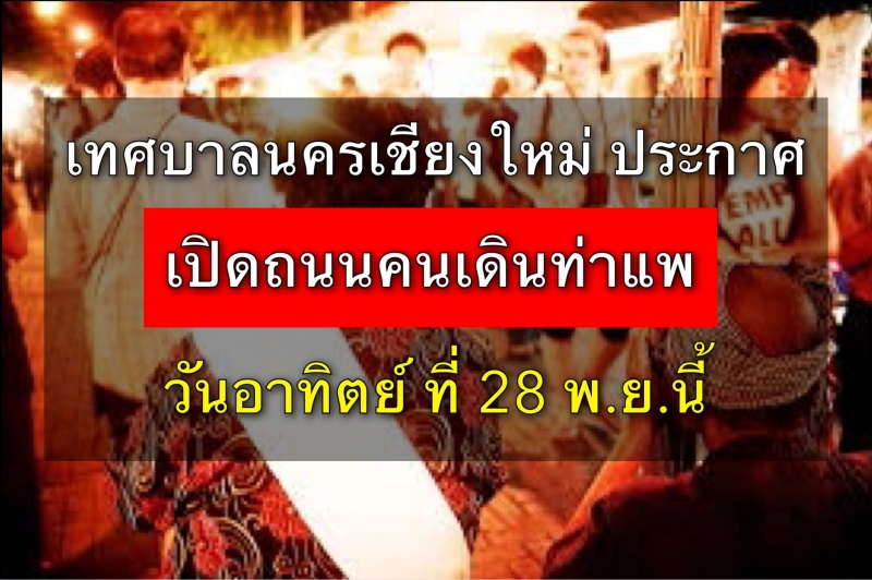 | • เทศบาลนครเชียงใหม่ ประกาศเปิด ถนนคนเดินท่าแพ วันอาทิตย์ ที่ 28 พ.ย.นี้ |