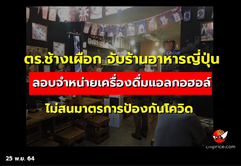 ตำรวจช้างเผือก จับร้านอาหารญี่ปุ่นลอบจำหน่ายเครื่องดื่มแอลกอฮอล์ ไม่สนมาตรการป้องกันโควิด