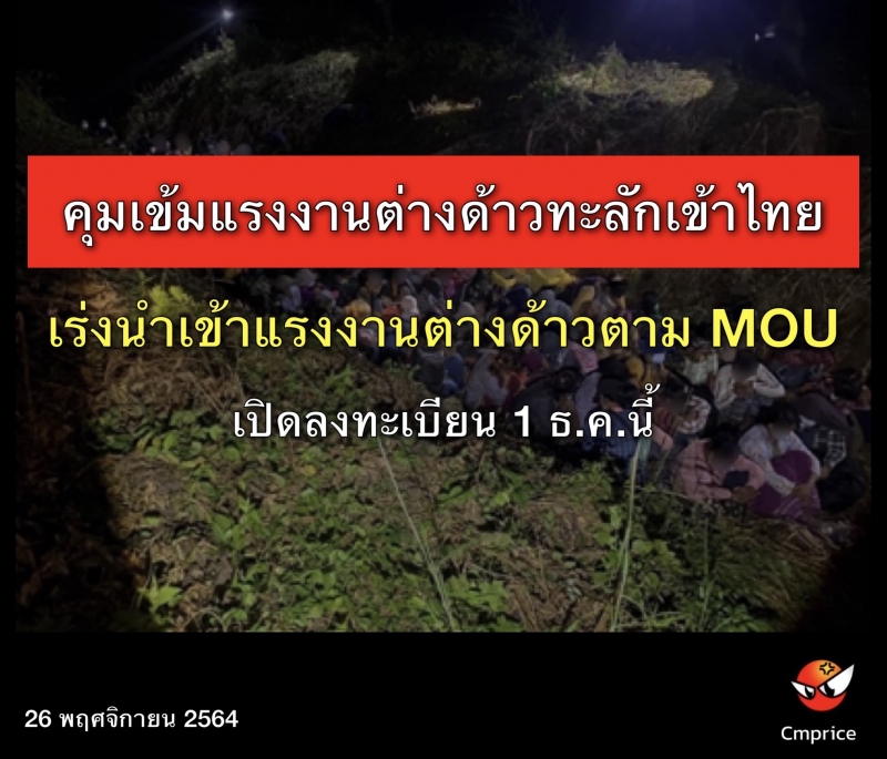 | • นายกฯ กำชับ คุมเข้มแรงงานต่างด้าวทะลักเข้าไทย เร่งนำเข้าแรงงานต่างด้าวตาม MOU เปิดลงทะเบียนในวันที่ 1 ธ.ค.นี้ |