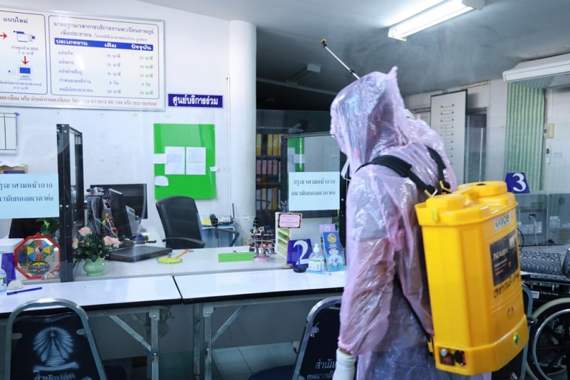 | • เทศบาลเมืองลำพูนฉีดฆ่าเชื้อ ในสำนักงาน และของดทำบัตรประชาชน |
