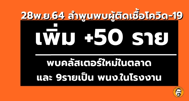 28 พฤศจิกายน 64  เพจศูนย์ข่าวโควิด 19 ลำพูน  แถลงสถานการณ์โควิด-19 จ.ลำพูนพบผู้ติดเชื้อเพิ่ม 50ราย  เป็นการติดเชื้อในจังหวัด47ราย มาจากต่างจังหวัด3ราย  สามารถดูและฟังแถลง ได้ข้างล่าง
