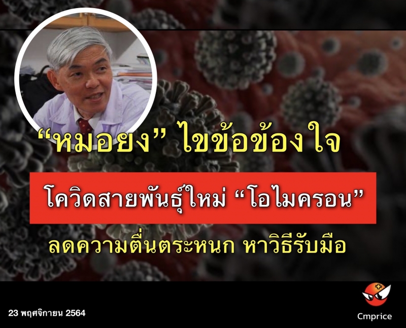 | • หมอยง ไขข้อข้องใจ โควิดสายพันธุ์ใหม่ โอไมครอน ลดความตื่นตระหนก หาวิธีการรับมือ |
