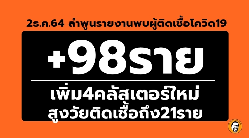 ลำพูนติดเชื้อเพิ่ม+98ราย เพิ่ม4คลัสเตอร์ใหม่ ,สว.ติดเชื้อถึง21ราย