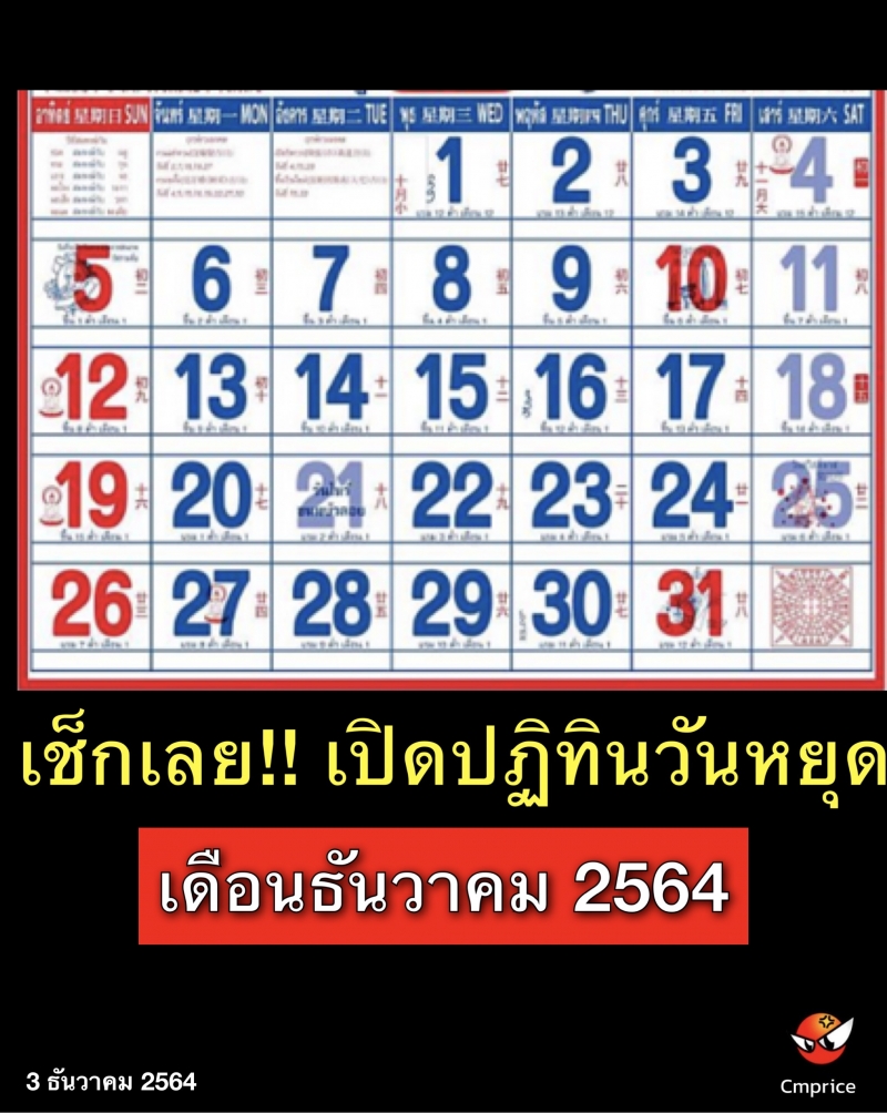 เข้าสู่เดือนส่งท้ายปีกับเดือนธันวาคม 2564 หลายคนต่างตั้งตารอ เพราะมีวันหยุดข้ามปี อีกทั้งยังสามารถวางแผนท่องเที่ยว สัมผัสอากาศหนาว หรือการเดินทางกลับภูมิลำเนาช่วงส่งท้ายปีเก่าต้อนรับปีใหม่ โดยปฏิทินวันหยุดราชการสำหรับเดือนนี้ ประกอบไปด้วยวันพ่อแห่งชาติ,วันรัฐธรรมนูญ, วันสิ้นปี และยังมีวันหยุดประจำภาคตะวันออก ที่ ครม. เคาะให้เป็นวันหยุดพิเศษสำหรับ 8 จังหวัด จะมีเฉพาะปี 2564 นี้เท่านั้น