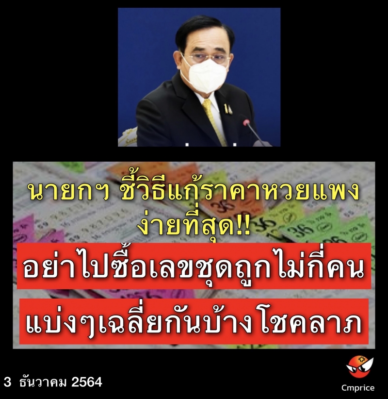 | • นายกฯ ชี้วิธีแก้ราคาสลากกินแบ่งฯ แพง ต้องไม่ซื้อเลขชุด สั่งตรวจสอบการรวมชุดสลาก |