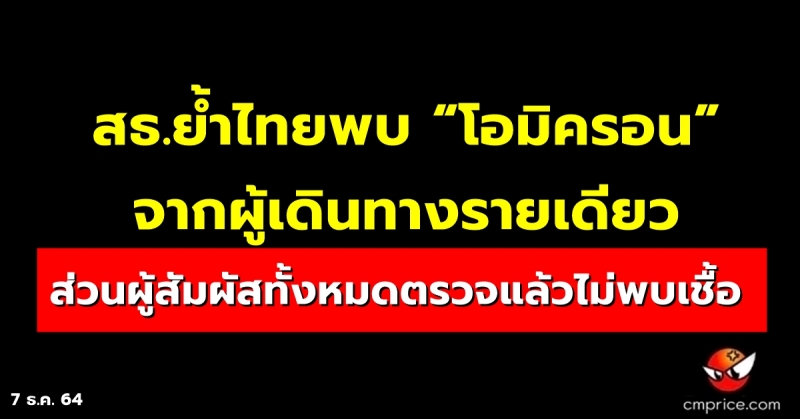 กระทรวงสาธารณสุขย้ำไทยยังพบผู้ติดเชื้อโควิด “โอมิครอน” เพียง 1 ราย ส่วนพนักงานโรงแรมที่สัมผัสใกล้ชิด ผลตรวจล่าสุดไม่พบเชื้อทั้งหมด แต่จะติดตามอาการและตรวจซ้ำก่อนครบกักตัว 14 วัน เผยสายพันธุ์โอมิครอนแพร่เร็ว อาการไม่รุนแรง คล้ายไข้หวัดใหญ่ อาจเป็นสัญญาณที่ดีเข้าสู่โรคประจำถิ่นได้เร็วขึ้น แต่ต้องฉีดวัคซีนให้ครอบคลุม เข้มมาตรการป้องกันตนเองตลอดเวลา