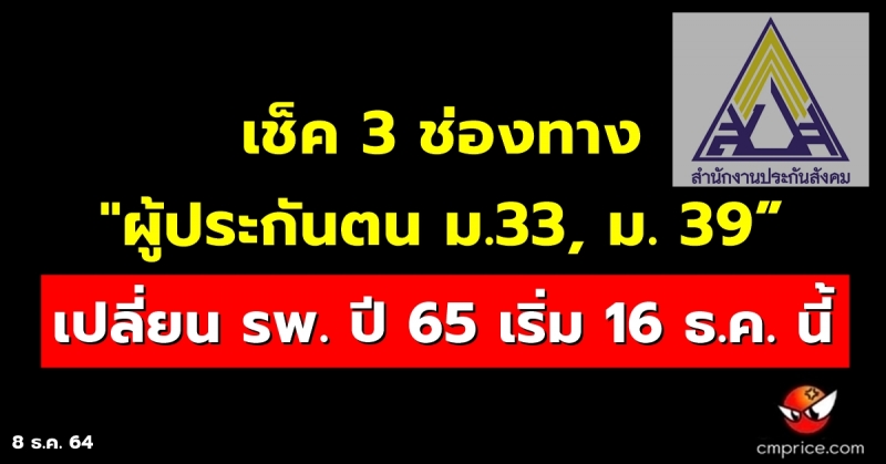 | • เช็ค 3 ช่องทาง "ผู้ประกันตน ม.33, ม. 39 เปลี่ยน รพ. ปี 65 เริ่ม 16 ธ.ค. นี้ |