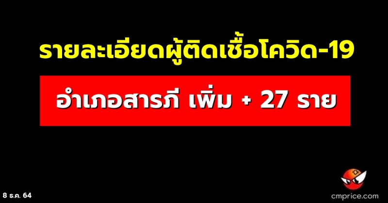 8 ธันวาคม 2564 งานควบคุมโรคติดต่อ สสอ.สารภี รายงานสถานการณ์โรคติดเชื้อไวรัสโคโรนา 2019 (COVID - 19) อำเภอสารภี เพิ่ม + 27 ราย
