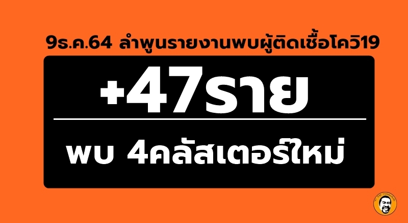 9 ธันวาคม 64 เพจศูนย์ข่าวโควิด 19 ลำพูน แถลงสถานการณ์โควิด-19 จ.ลำพูนพบผู้ติดเชื้อเพิ่ม 47ราย เป็นการติดเชื้อในจังหวัด 43ราย มาจากต่างจังหวัด4ราย สามารถดูและฟังแถลง ได้ข้างล่าง