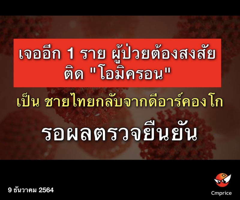 | • เจออีก 1 ราย ผู้ป่วยต้องสงสัยติด "โอมิครอน" เป็น ชายไทยกลับจากดีอาร์คองโก รอผลตรวจยืนยัน |