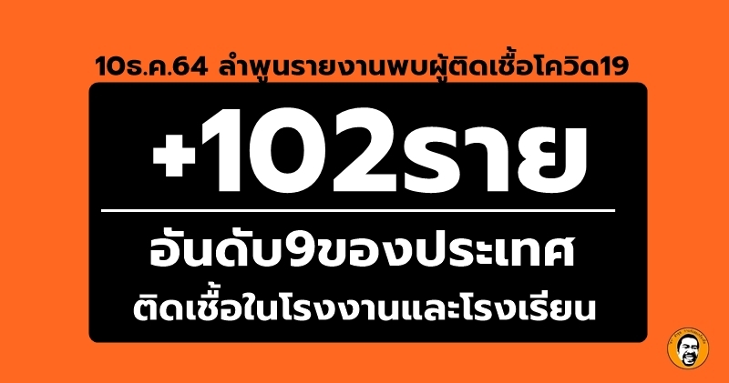 10 ธันวาคม 64 เพจศูนย์ข่าวโควิด 19 ลำพูน แถลงสถานการณ์โควิด-19 จ.ลำพูนพบผู้ติดเชื้อเพิ่ม 102ราย ( รวมสะสม 4406 ราย ต้ังแต่10เมษา64 เป็นต้นมา ) เป็นการติดเชื้อในจังหวัด 102ราย มาจากต่างจังหวัด0ราย สามารถดูและฟังแถลง ได้ข้างล่าง