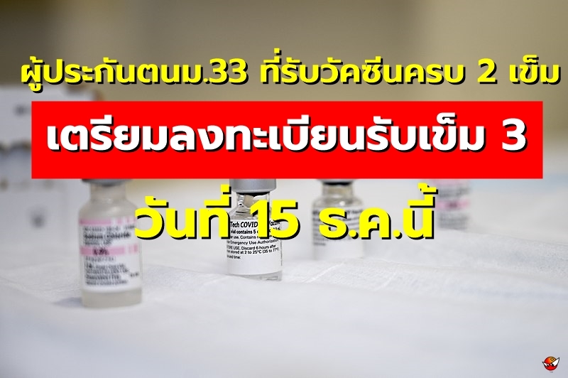 | • ผู้ประกันตนม.33 ที่รับวัคซีนครบ 2 เข็ม เตรียมลงทะเบียนรับเข็ม 3 วันที่ 15 ธ.ค. |