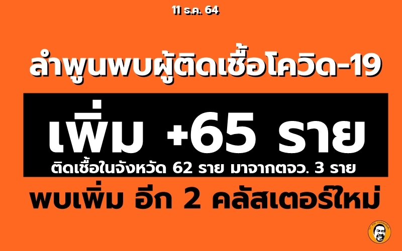 | • ลำพูนติดเชื้อเพิ่ม+65ราย และพบอีก2 คลัสเตอร์ใหม่ |