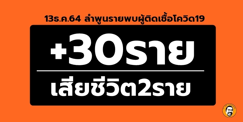 13 ธันวาคม 64 เพจศูนย์ข่าวโควิด 19 ลำพูน แถลงสถานการณ์โควิด-19 จ.ลำพูนพบผู้ติดเชื้อเพิ่ม 30ราย ( รวมสะสม 4,546 ราย ต้ังแต่10เมษา64 เป็นต้นมา ) เป็นการติดเชื้อในจังหวัด 25ราย มาจากต่างจังหวัด 5ราย สามารถดูและฟังแถลง ได้ข้างล่าง