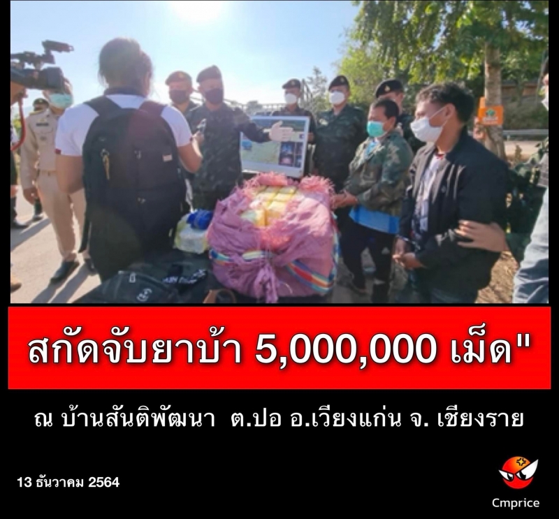 กรณีเมื่อเช้ามืด ของวันที่ 13 หน่วยเฉพาะกิจกรมทหารม้าที่ 3 โดย กองบังคับการควบคุมป้องกันและปราบปรามยาเสพติดที่ 4 จัดกำลังพล จำนวน 1 ชุดปฏิบัติการ ทำการตั้งจุดตรวจ/จุดสกัด บริเวณ บ้านห้วยหาน หมู่ 9 ตำบลปอ อำเภอเวียงแก่น จังหวัดเชียงราย เมื่อวันที่ 13 ธันวาคม 2564 เวลา 2 นาฬิกา ได้ตรวจพบรถยนต์ ยี่ห้อโตโยต้า รุ่นรีโว่ สีบรอน หมายเลขทะเบียน ยต 8567 เชียงใหม่ ขับผ่านมาบริเวณจุดตรวจ จึงได้ขอทำการตรวจค้น แต่รถยนต์คันดังกล่าวได้ขับหลบหนี เจ้าหน้าที่จึงได้ทำการติดตาม จนเมื่อเวลา 0220 สามารถจับกุมได้ ณ บริเวณ บ้านสันติพัฒนา ตำบลปอ อำเภอเวียงแก่น จังหวัดเชียงราย ทราบชื่อ คือ นาย โชคอนันต์ สวาทชาติ อายุ 25 ปี อยู่บ้านเลขที่ 150 หมู่ 6 ตำบลสันสลี อำเภอเวียงป่าเป้า จังหวัดเชียงราย เป็นผู้ขับขี่ จากการตรวจค้นพบยาเสพติดให้โทษประเภท 1 (ยาบ้า) จำนวน 5,000,000 เม็ด บรรจุอยู่ในกระสอบ จำนวน 25 ใบ บรรทุกอยู่ท้ายกระบะรถยนต์คันดังกล่าว ซึ่ง นาย โชคอนันต์ฯ ได้ให้การรับสารภาพว่า มีผู้ว่าจ้างให้ทำการขนยาเสพติดดังกล่าว ทั้งนี้เจ้าหน้าที่ ได้ทำการขยายผลจับกุมเพิ่มเติม นายบุญเกิด เลาเฒ่า เชื้อสายม้ง ซึ่งเป็นน้องชาย และน้องเมีย ของผู้ต้องหา ขับรถกระบะ โตโยต้าวีโก รถใหม่ไม่ติดแผ่นป้ายทะเบียน เจ้าหน้าที่จึงได้ควบคุมตัวผู้ต้องหาพร้อมของกลาง นำส่งเจ้าหน้าที่ตำรวจเพื่อดำเนินคดีตามกฎหมายต่อไป