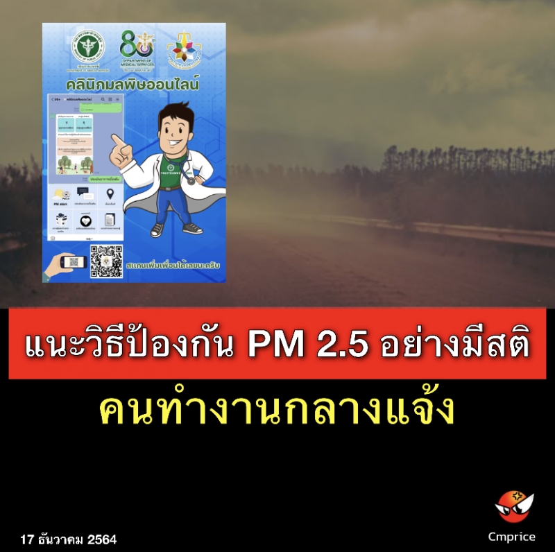 นายแพทย์สมศักดิ์ อรรฆศิลป์ อธิบดีกรมการแพทย์ เปิดเผยว่า ฝุ่นมลพิษ PM 2.5 กลับมาอีกครั้ง คำว่า PM ย่อมาจากคำว่าอนุภาค และ ขนาดของอนุภาคนี้จะเล็กถึง 2.5 ไมครอน หรือขนาด 0.0025 มิลลิเมตร เทียบกับเม็ดทราย มีขนาด 60 ไมครอน ก็คงนึกออกว่าขนาดของ PM2.5 จะเล็กขนาดไหน ด้วยขนาดที่เล็กมากเมื่ออยู่ในอากาศ เราจึงหายใจลึกเข้าไปถึงถุงลมขนาดเล็กในปอด ที่น่ากลัวกว่านั้น คือมันสามารถแทรกผ่านผนังถุงลมเข้าไปในกระแสเลือดรอบๆ ถุงลมและกระจายเข้าร่างกายไปอวัยวะต่างๆได้โดยเลย เมื่อเข้าไปในร่างกายแล้ว จะทำให้เกิดการอักเสบของส่วนต่างๆ เช่น ปอด ผนังเส้นเลือด และอวัยวะต่างๆ ดังนั้น PM2.5 จะทำให้มีทั้งอาการเฉียบพลัน เช่น แสบตา แสบคอ น้ำมูกไหล ผื่นผิวหนัง เหนื่อย มีเสมหะ ไอ ถ้าหายใจเข้าเป็นเวลานานก็จะทำให้มีอาการเหนื่อย หอบ หายใจลำบาก จากโรคปอด และโรคของเส้นเลือดหัวใจ
