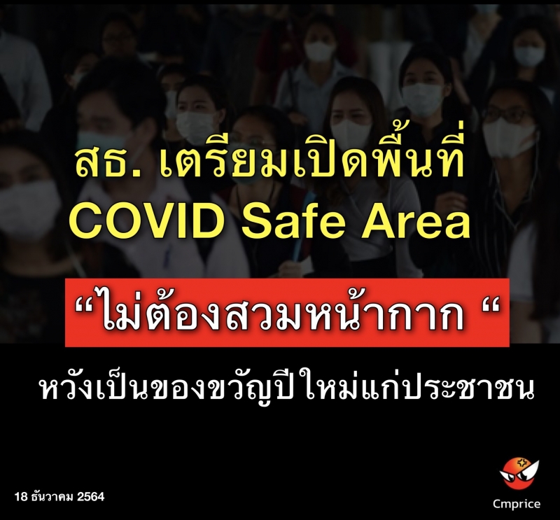 | • สธ. เตรียมเปิดพื้นที่ COVID Safe Area ไม่ต้องสวมหน้ากาก หวังเป็นของขวัญปีใหม่แก่ประชาชน |