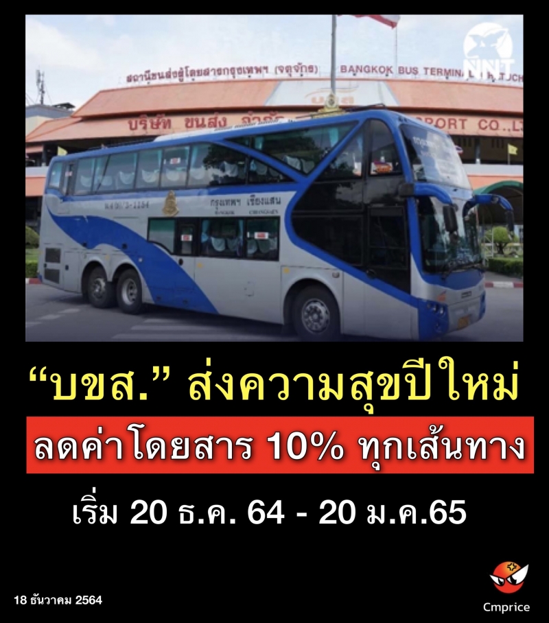 | • บขส. ส่งความสุขปีใหม่ ลดค่าโดยสาร 10% ทุกเส้นทาง เริ่ม 20 ธ.ค. 64 - 20 ม.ค.65 |