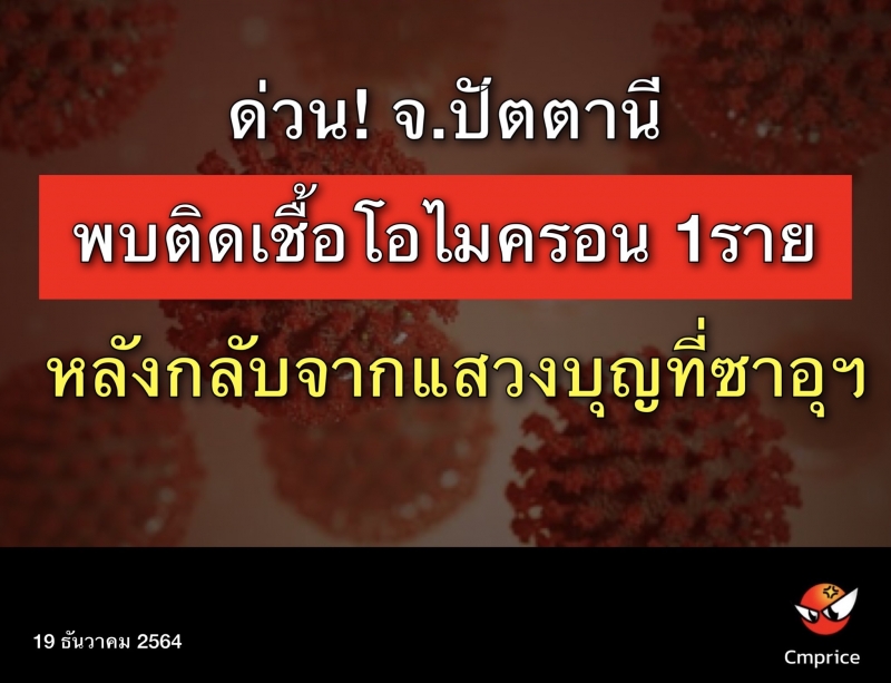 | • ปัตตานีพบติดเชื้อโอไมครอน 1 ราย หลังกลับจากแสวงบุญที่ซาอุฯ |