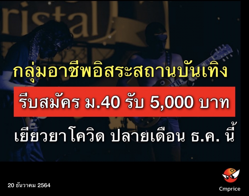 กลุ่มอาชีพอิสระสถานบันเทิง รีบสมัคร ม. 40 รับ 5,000 บาท เยียวยาโควิด ปลายเดือน ธ.ค. นี้