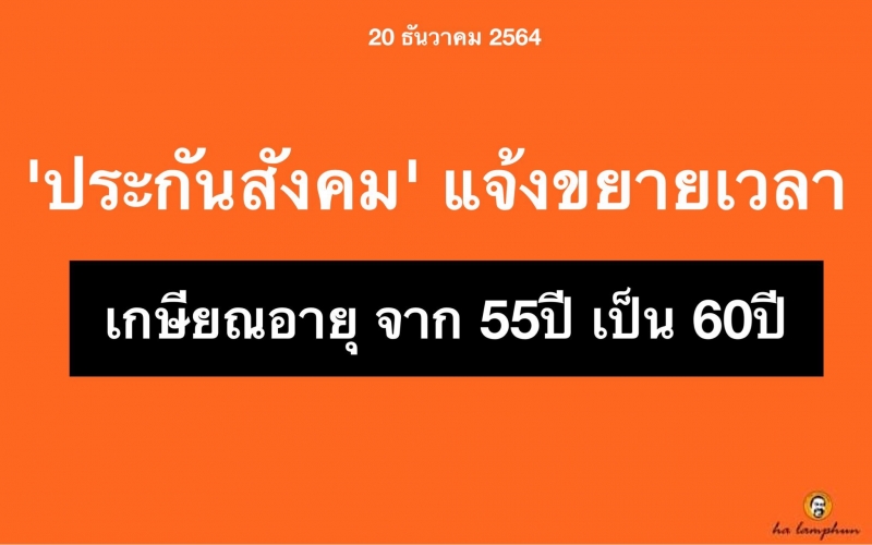 'ประกันสังคม' แจ้งขยายเวลาเกษียณอายุ จาก 55 ปี เป็น 60 ปี