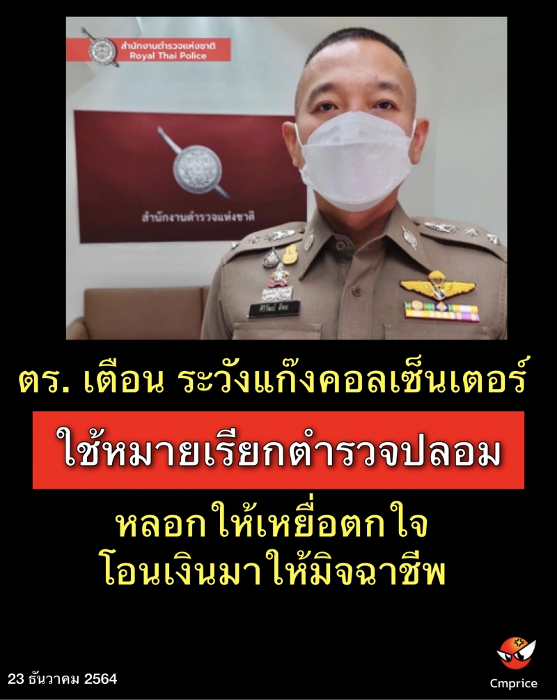 | • ตร. เตือน ระวังแก๊งคอลเซ็นเตอร์ ใช้หมายเรียกตำรวจปลอม หลอกให้เหยื่อตกใจ โอนเงินมาให้มิจฉาชีพ |