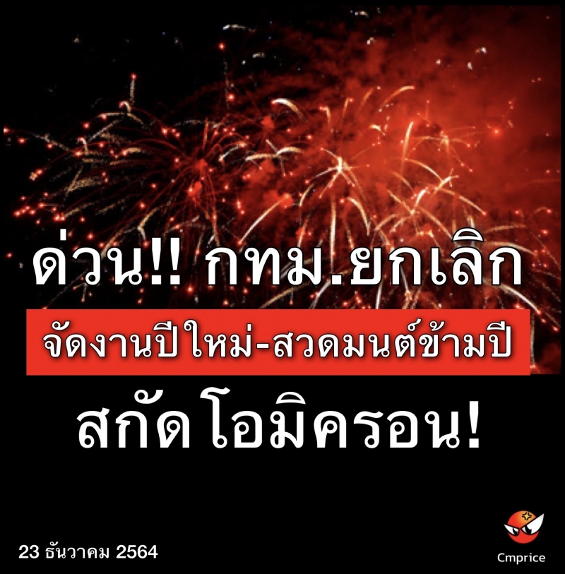| • กทม.ยกเลิกจัดงานปีใหม่งดสวดมนต์ข้ามปี สกัดโอมิครอน! |