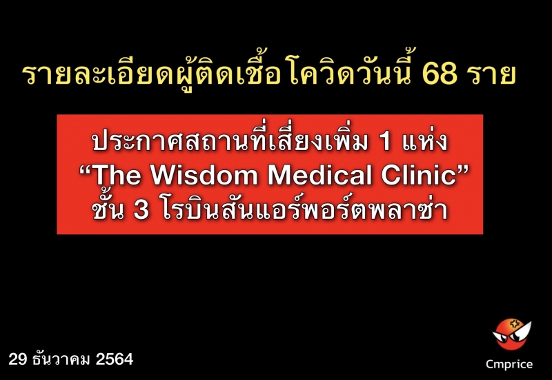 | • ประกาศสถานที่เสี่ยงผู้ที่เดินทางไป The Wisdom Medical Clinic 21-26 ธ.ค. สังเกตอาการตนเอง 14 วัน |