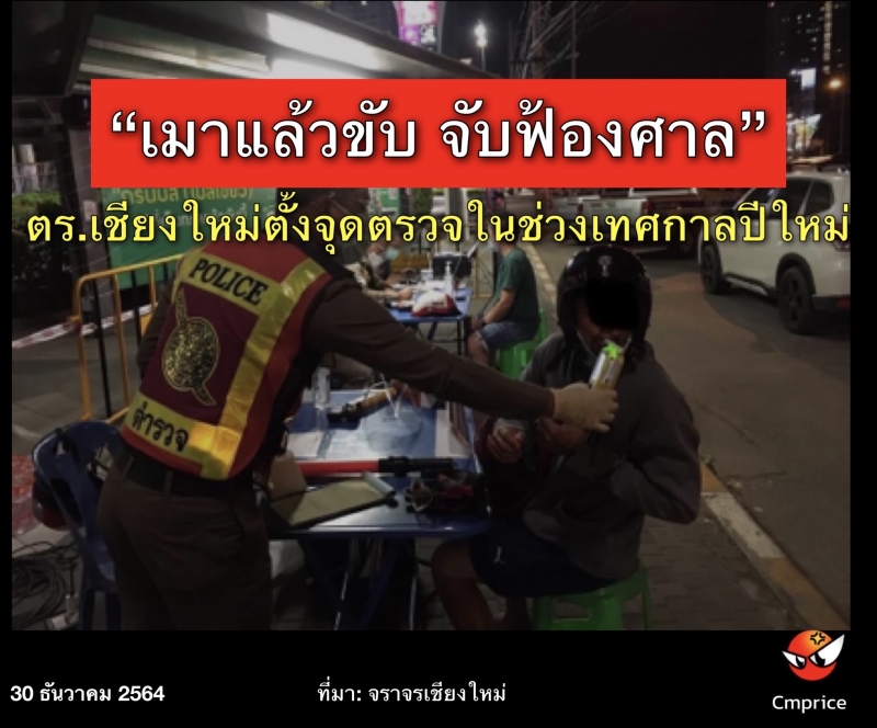 “เมาแล้วขับ จับฟ้องศาล” ตร.เชียงใหม่ตั้งจุดตรวจในช่วงเทศกาลปีใหม่