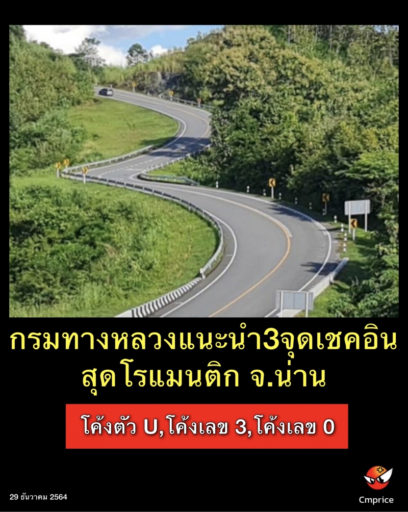 | • กรมทางหลวงแนะนำ 3จุดเชคอิน เส้นทางสายโรแมนติก จ.น่าน โค้งตัว U,โค้งเลข 3และโค้งเลข 0 |