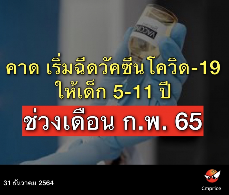 | • รมช.สธ. คาด เริ่มฉีดวัคซีนโควิด ให้เด็ก 5-11 ปี ช่วงเดือน ก.พ. 65 |