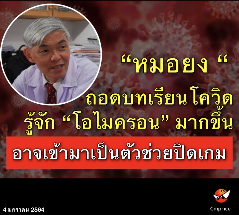 | • หมอยง ถอดบทเรียนโควิดรู้จัก โอไมครอน มากขึ้น อาจเข้ามาเป็นตัวช่วยปิดเกม |