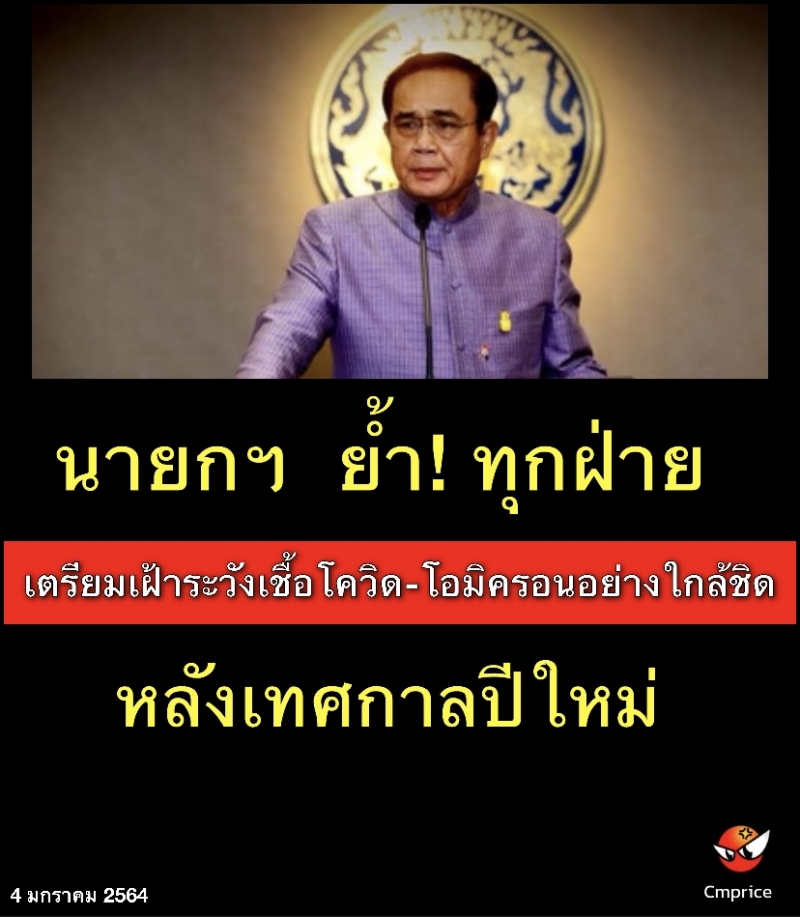 | • นายกฯ ย้ำ ทุกฝ่ายเตรียมเฝ้าระวังเชื้อโควิดและสายพันธุ์โอมิครอนอย่างใกล้ชิดหลังเทศกาลปีใหม่ |