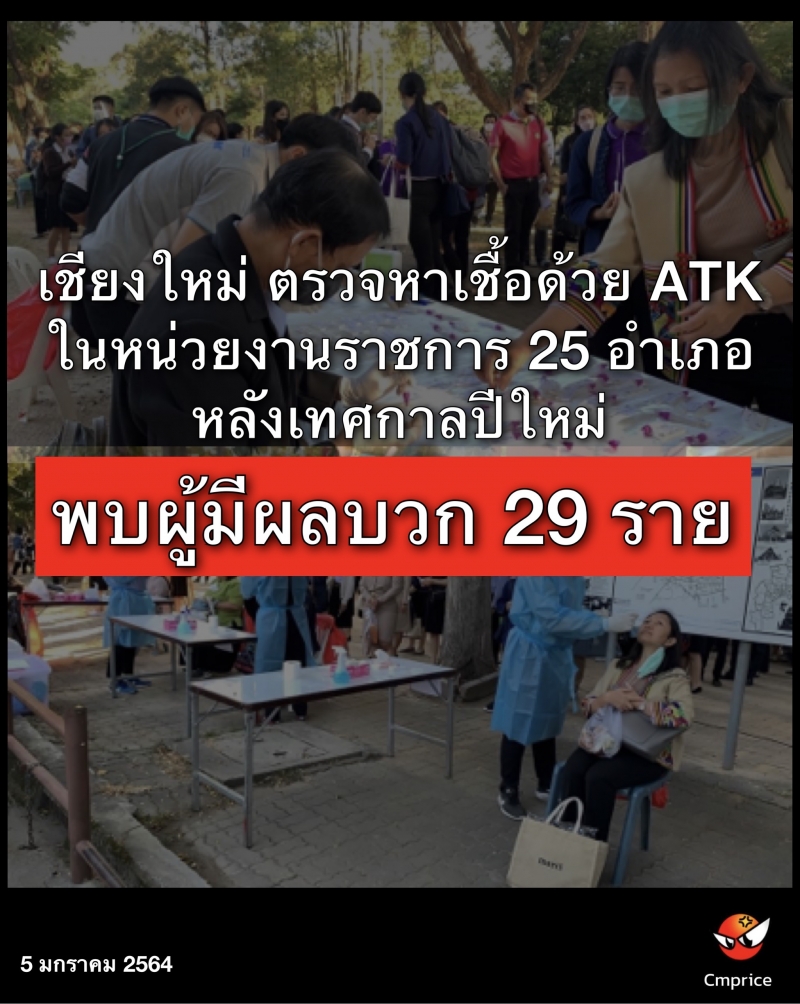 เชียงใหม่ ตรวจหาเชื้อด้วย ATK ในหน่วยงานราชการทั้ง 25 อำเภอ หลังเทศกาลปีใหม่ พบผู้มีผลบวก 29 ราย