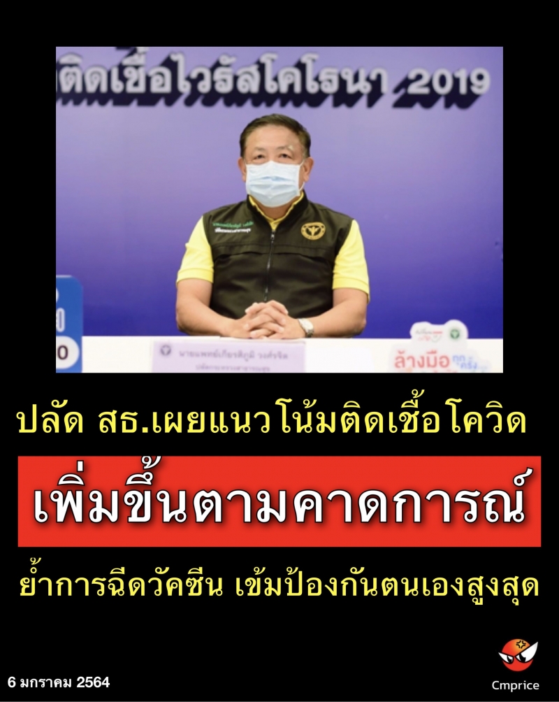 ปลัด สธ.เผยแนวโน้มติดเชื้อโควิดเพิ่มขึ้นตามคาดการณ์ ย้ำฉีดวัคซีน ใช้มาตรการ UP ช่วยป้องกันการติดเชื้อ