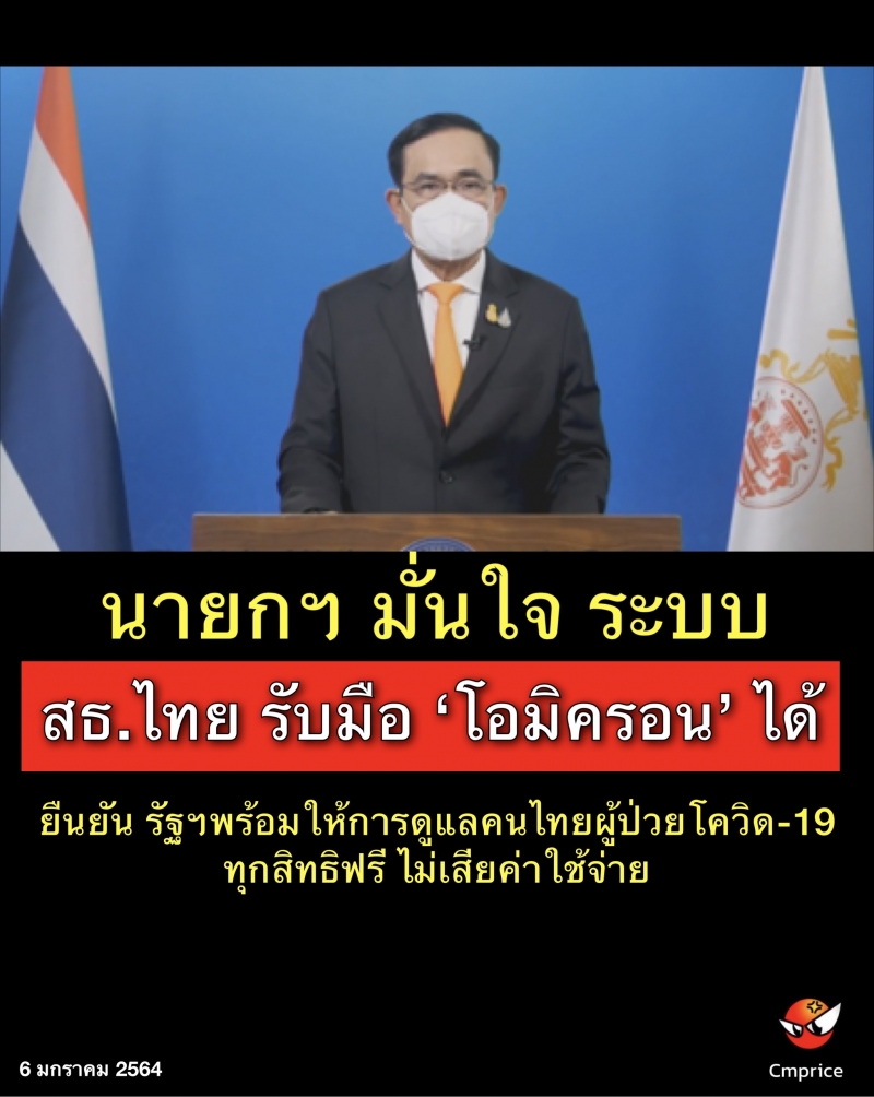 นายกฯ มั่นใจ ระบบ สธ.ไทย รับมือ ‘โอมิครอน’ ได้ ยืนยันรัฐบาลพร้อมให้การดูแลคนไทยผู้ป่วยโควิด-19 ทุกสิทธิฟรี ไม่เสียค่าใช้จ่าย