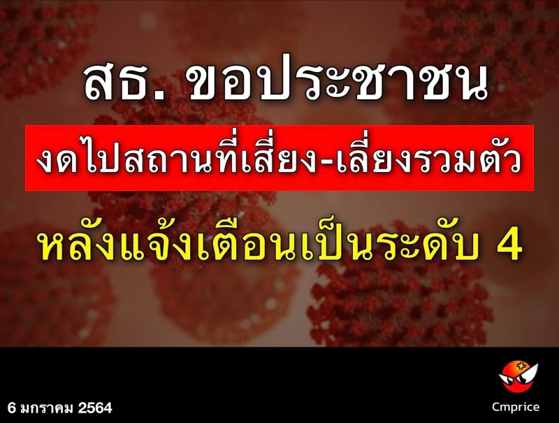 สธ.ขอประชาชนงดไปสถานที่เสี่ยง เลี่ยงรวมตัว ป้องกันติดเชื้อหลักหมื่นหลังแจ้งเตือนเป็นระดับ 4
